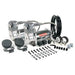 The VIAIR 380C Dual Performance Value Pack is ideal for air suspension systems capable of providing a maximum of 200 PSI and a 100% duty cycle. The kit features two 12-volt Pewter, Chrome or Stealth Black 380C air compressors, two heavy duty 40-amp relays and a 165 PSI cut-on, 200 PSI cut-off heavy-duty pressure switch. Each 380C Dual Performance Value Pack also comes with remote mountable air filter assemblies and mounting hardware.